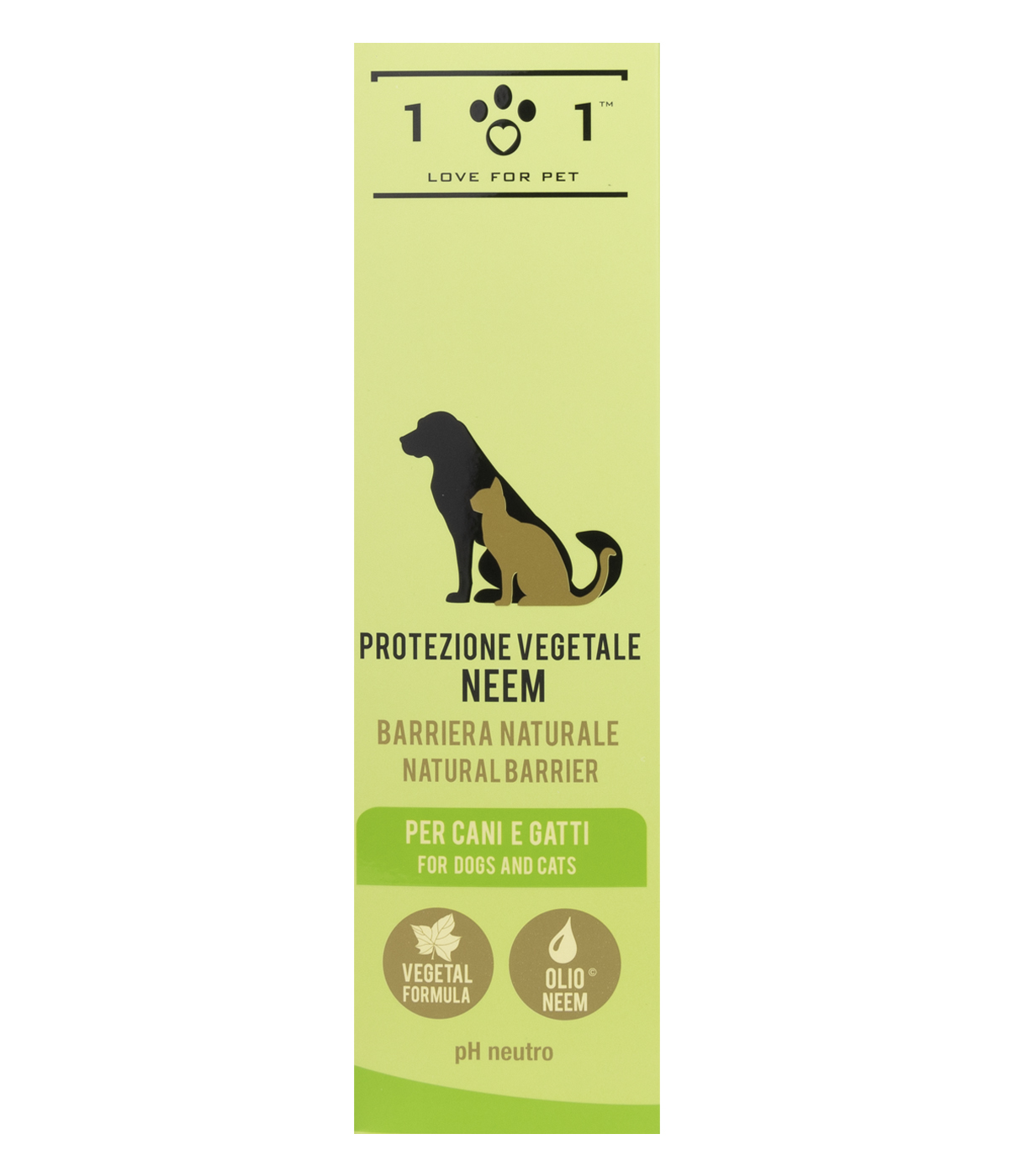 Spray repellente naturale all'olio di Neem per cani e gatti.